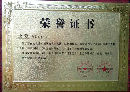 王芳女士依据物体存在的艺术形象,用独特的审美方式,使没有灵性的物体升华为动态的人物艺术,静态工艺品、实用艺术品、造型艺术品、美学艺术品、工艺艺术品。她的国画山水画及工笔石头画在国内具有独特的创作风格。