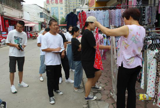 由高鹏带队在三眼桥市场调研过程当中,小组主要向相商家咨询了关于其店铺的经营模式、仓库的搬运方式、运输商品的配备方面做了现场的采访。在调研过程中,小组成员还现场参与了商品的售卖。