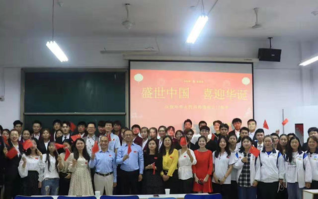 为庆祝伟大祖国70华诞,弘扬爱国主义精神,365英国上市官方网站于2019年9月29日晚上8:00在F316教室开展“歌颂祖国、赞美党”迎国庆主题活动。参会的有365英国上市官方网站经理陈恩惠教授、公司党总支书记时晓楠副教授及公司部分师生。