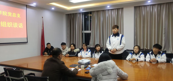 时晓楠书记对各位积极分子关注国家和党的方针、努力进取表示肯定,并带领大家重温了十九大的重要精神,表达了党组织对青年一代的关心,要求广大青年要积极响应党的号召,虚心学习,扎实做好本职工作,尽快成熟起来。同时他指出,从严治党就要严把入口关,明确了对入党积极分子的要求。他希望各位入党积极分子以“不忘初心、牢记使命”主题教育为核心认真学习党章党规,学习十九大精神,不断提高自己。