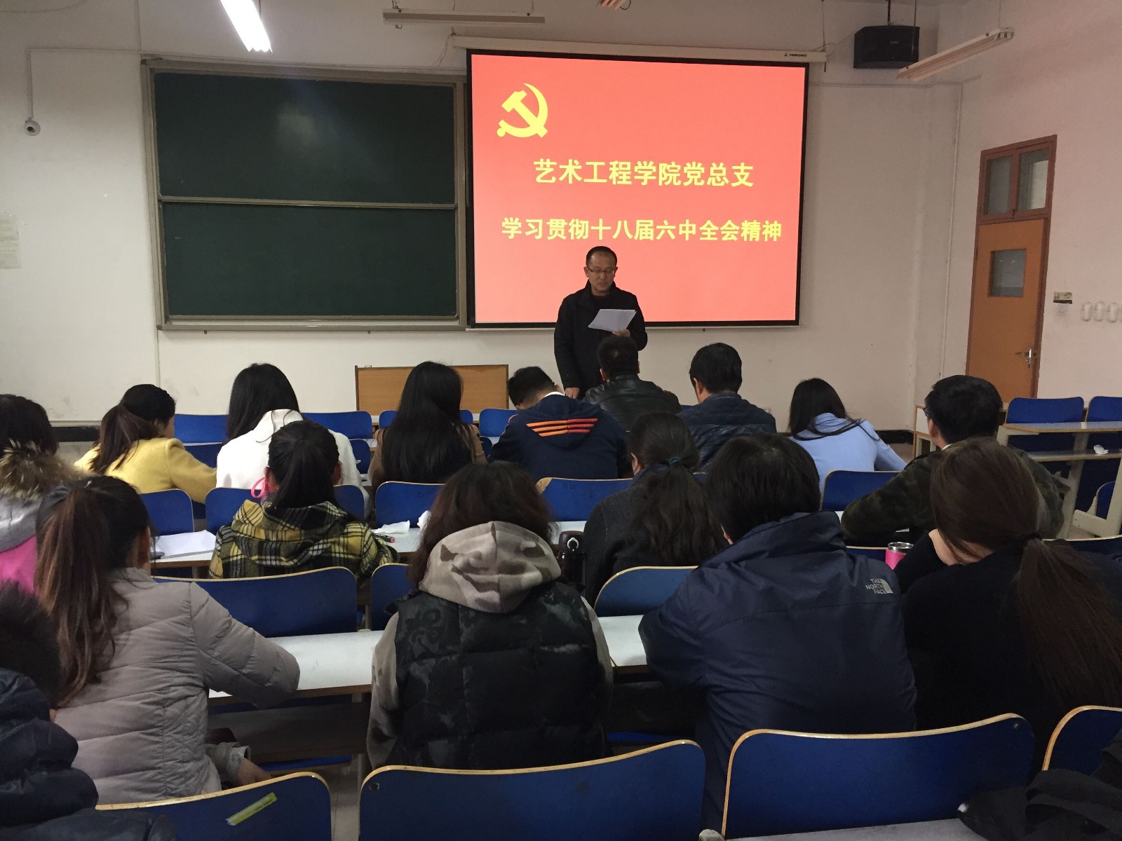 11月8日下午,艺术工程公司党总支在科技楼403教室召开全体党员干部会议,进一步贯彻落实“党的十八届六中全会精神”。会议由党总支书记时晓楠同志主持。